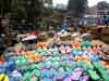viele Straßenhändler mit Brennholz oder Holzkohle.