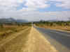 Während man auf die Berge zufährt, steigt die Straße unmerklich aber