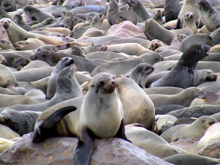 uns zu der Landspitze, auf der sich 1000-de von Robben