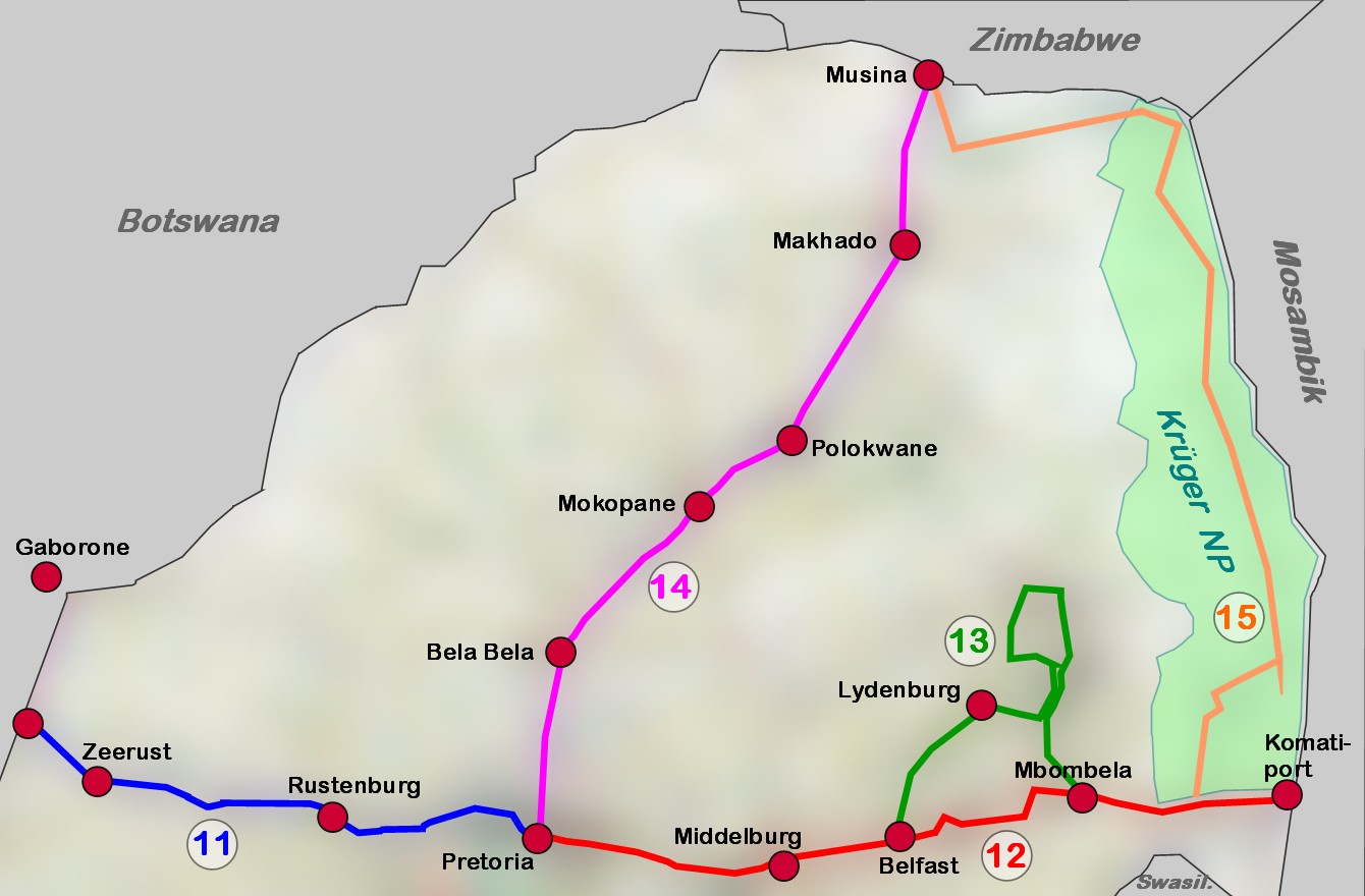 Pretoria - (Bela Bela) - Mokopane - Polokwane - Louis Trichardt - Musina - Beitbridge
