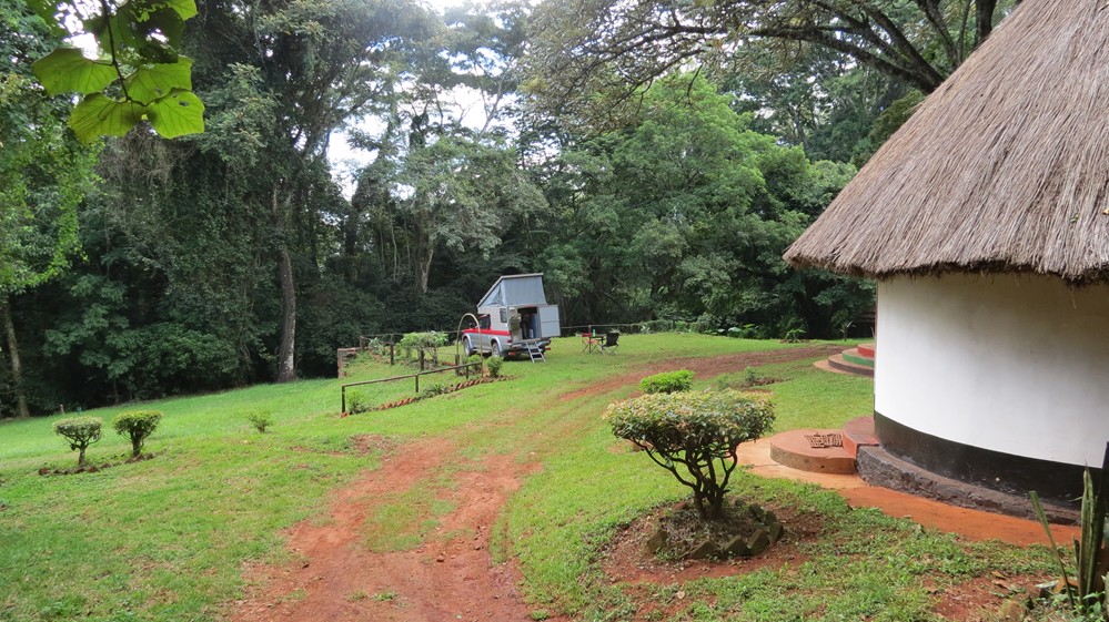 Schönes Wiesengelände mir einzelnen höheren Bäumen am Ostufer des Stausees, etwa einen km von Damm entfernt. Toilettenhaus, Abspülhaus, Duschhaus (ohne Licht) in akzeptablen Zustand. 1 Steckdose für Stecker mit Rechteckstiften. Zurzeit soll 1 Krokodil im Stausee leben, weiterhin gibt es auch Leoparden in der Gegend, diese sollen den Campingplatzbenutzern jedoch nicht gefährlich werden. Höhe: 1257.   Å  kein Mobilfunknetz m.   : 8 US$ / Person + Parkeintritt (2013)