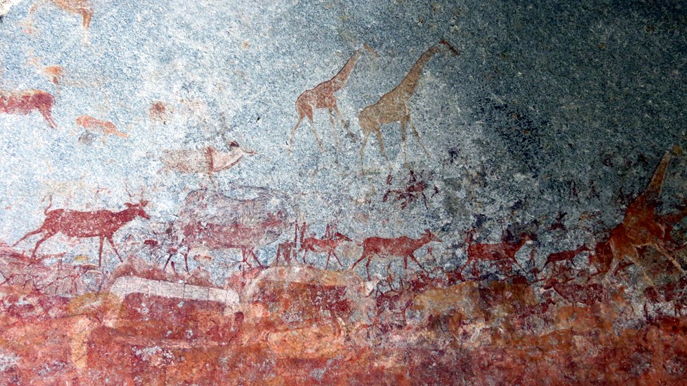 • An einer Umkehrschleife endet die Piste. Der folgende Fußweg ist gut gekennzeichnet und folgt "200 Yards" weit zu nächst über eine Walfischrücken benannte Felsformation und dann über grobe Steintreppen bis zu Höhle. Sie enthält eine überaus reiche Sammlung unterschiedlichster Felszeichnungen und ist deshalb die Mühen der kurzen Anreise durchaus wert.