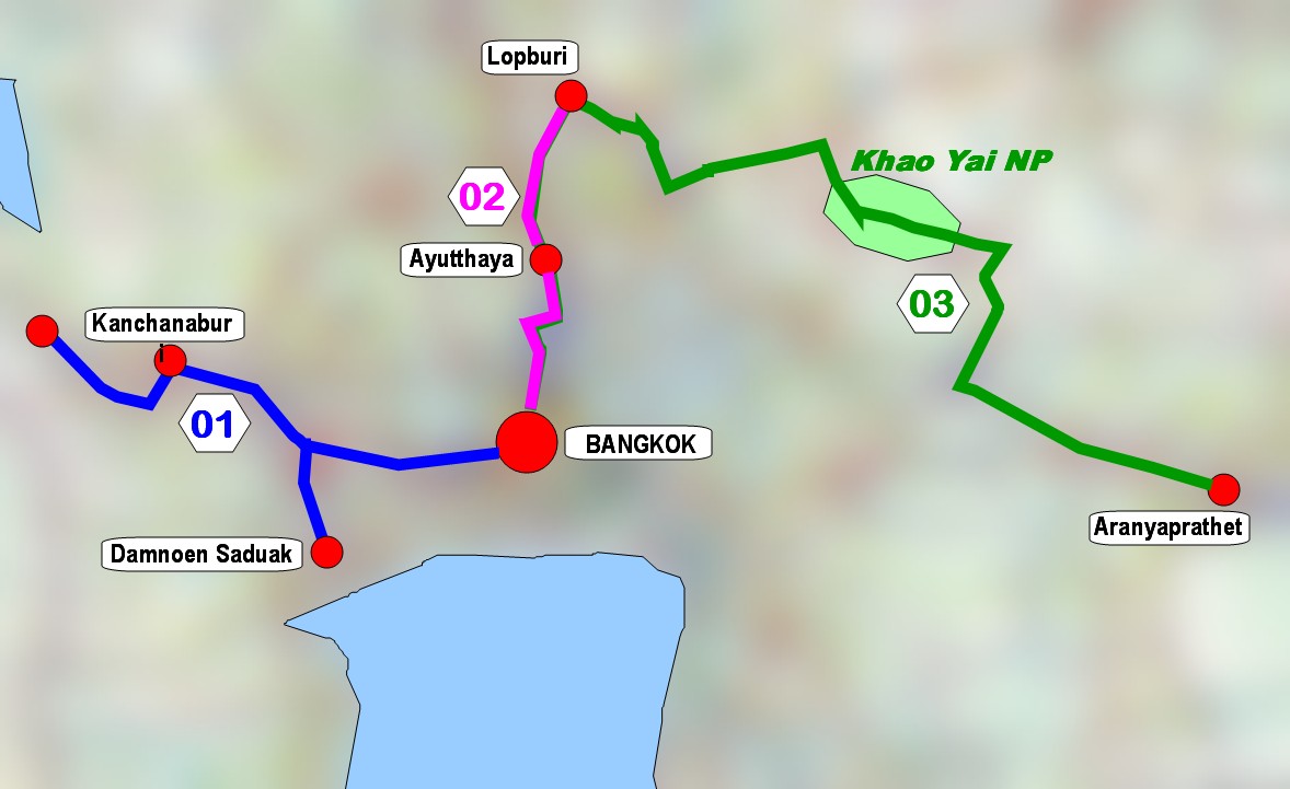 Lopburi(*) - Khao Yai Nationalpark(*) Aranyaprathet (Grenze Kambodscha) |