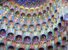 ungewöhnlich farbenfrohen Holzsäulen und Deckenornamenten (Bild 19-21)