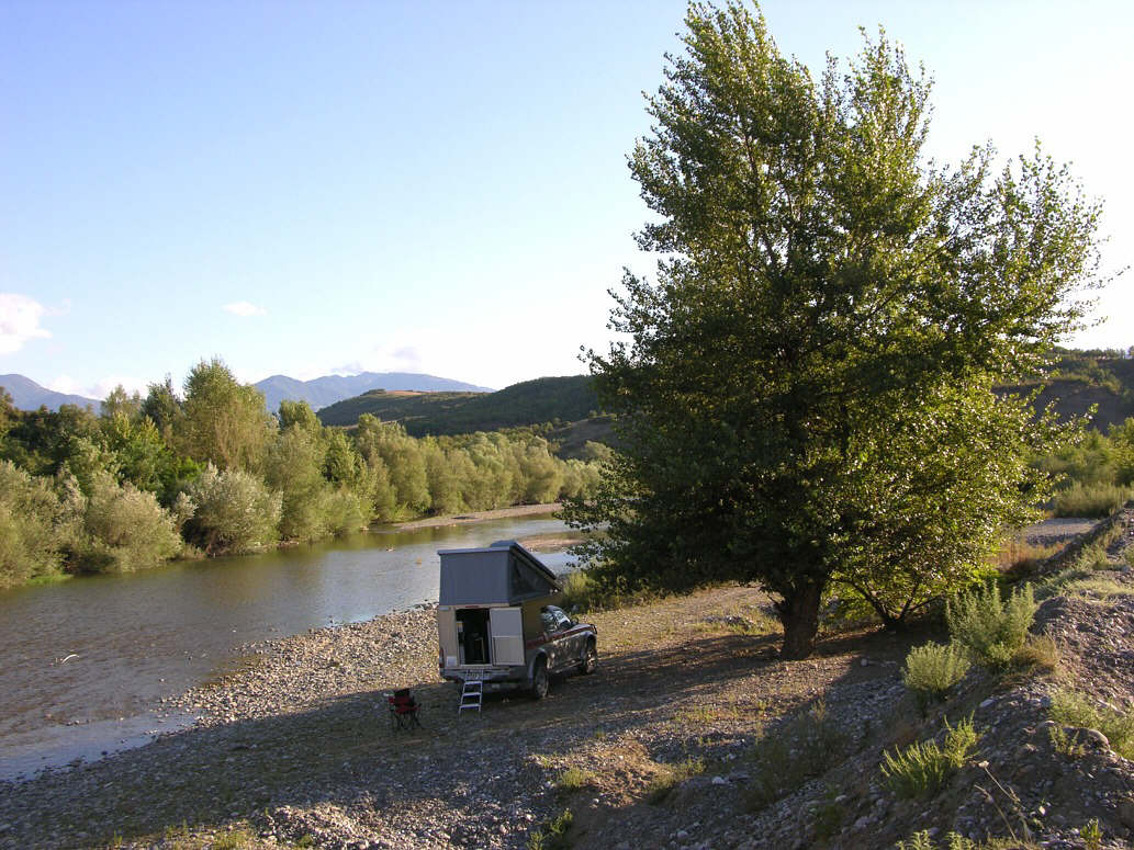 den Fluss und findet dort einen geeigneten Rast- / Übernachtungsplatz, z.B. 41° 38,863 - 20° 19,483 (120).