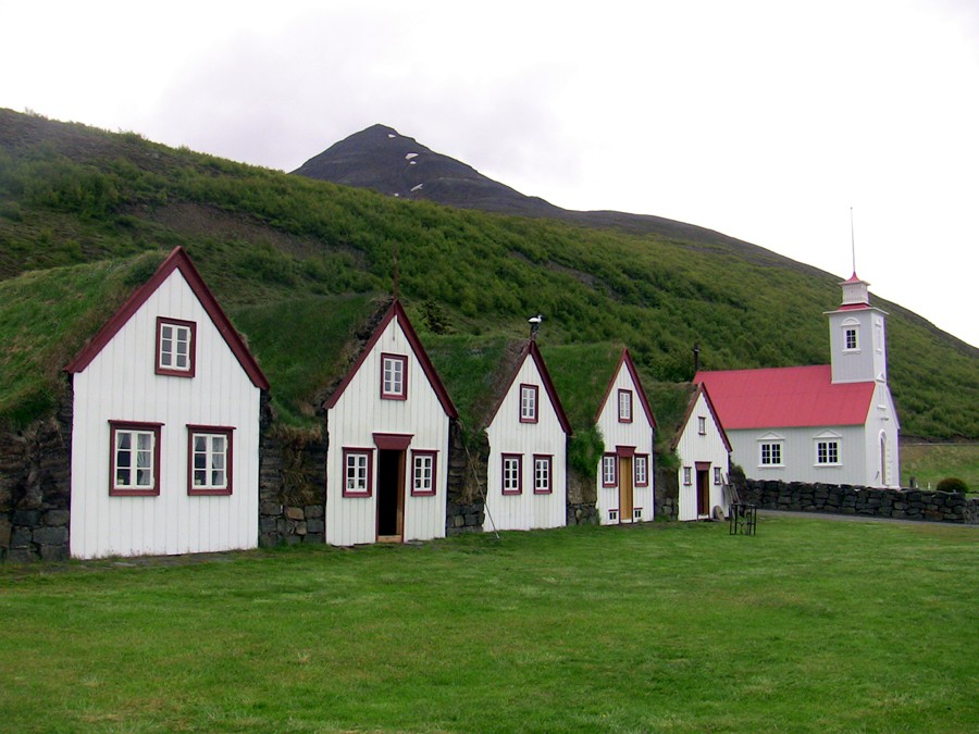glanzvollen Beispielen traditioneller Torfgehöfte.(700 ISK / P).