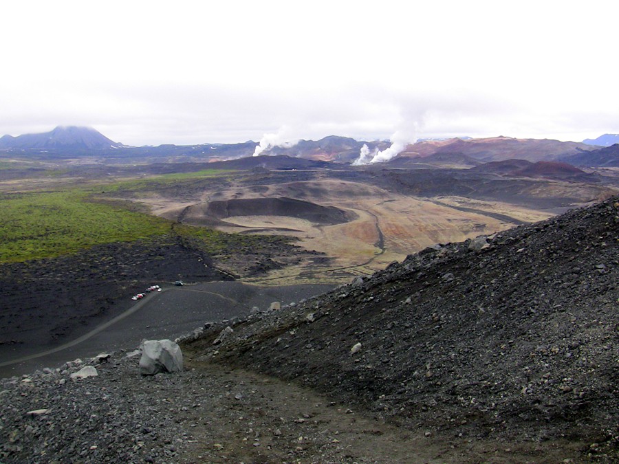 und erkennen bald vor uns den Myvatn, an dessen nördlichem Ende mächtige